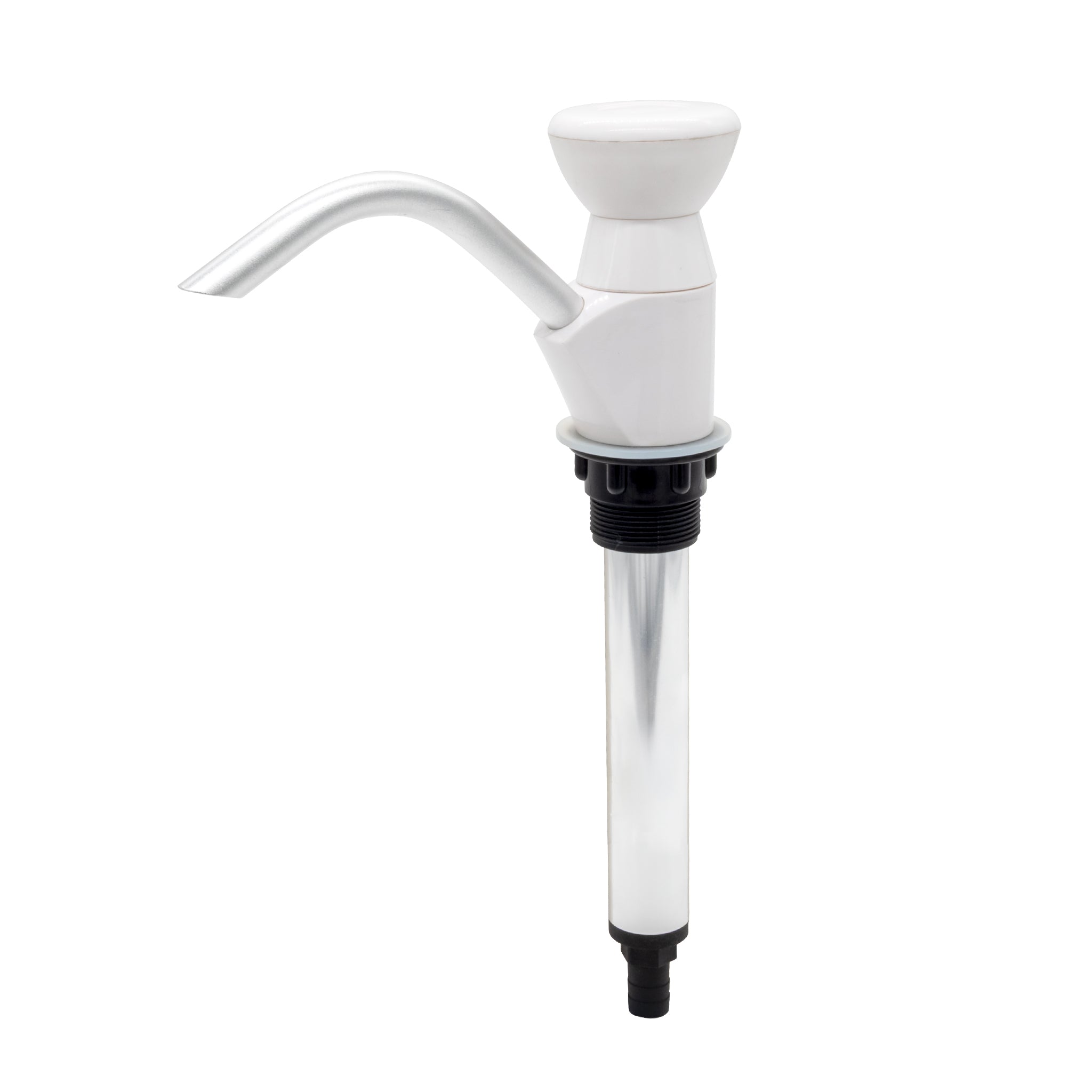 The Aussie Traveller Self-Priming Sink Pump is a reliable and efficient manual water solution with a corrosion-resistant anodised aluminium barrel and durable white plastic components.
