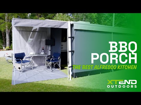 The Xtend Outdoors BBQ Porch is a great addition to extend your living area, cook on your BBQ, or to simply provide a dry, shaded area to relax under. This simple set up porch has a heavy duty vinyl roof that withstands majority of weather conditions.