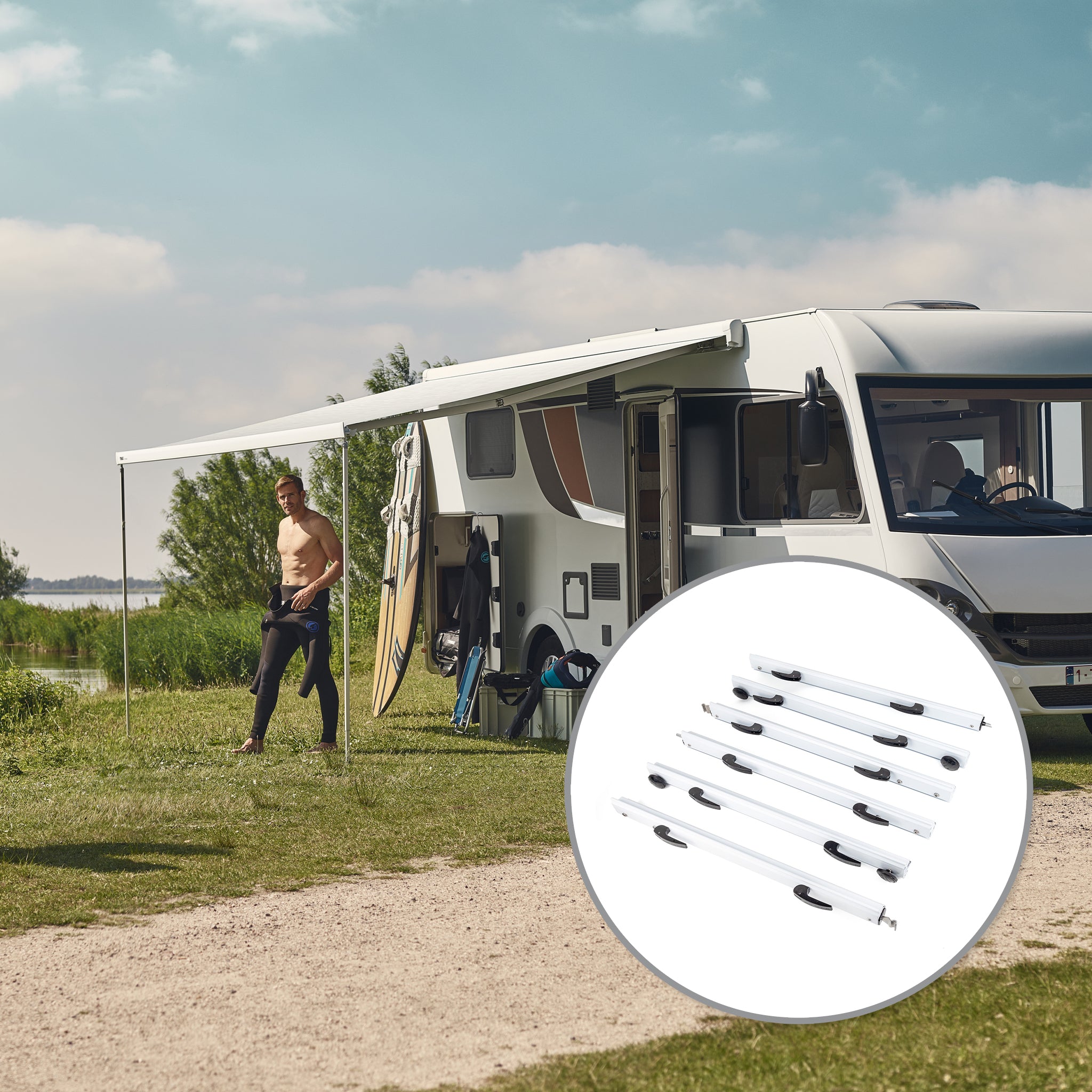 - Comes with mounting brackets to easily mount onto a caravan. Special brackets are available for other installations.