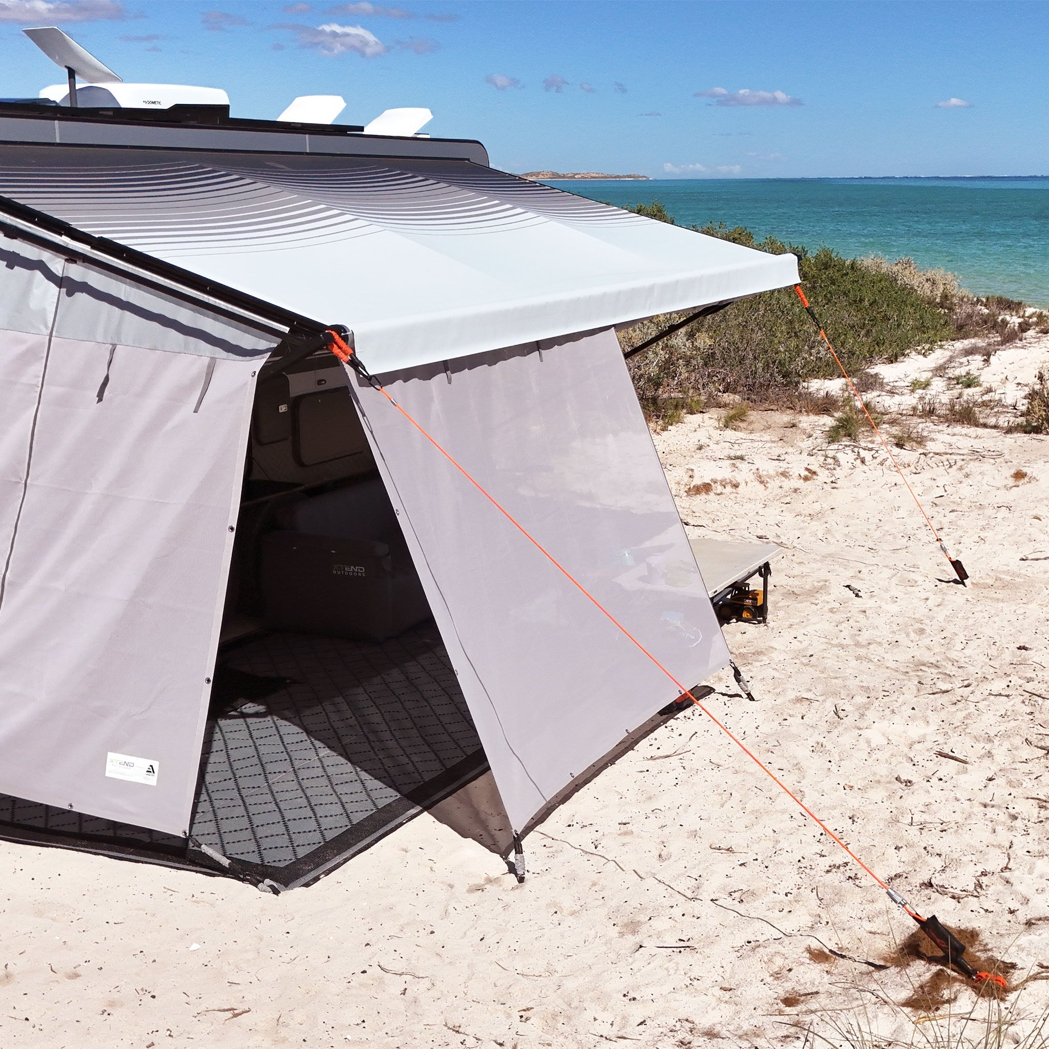 These walls provide comprehensive coverage and are designed to extend the entire length of the caravan awning. With their high-quality UV-resistant materials, they effectively shield you and your outdoor space from the sun. Sun blocker full-length walls are perfect for campers seeking maximum sun protection and privacy.