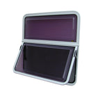 The Single Hopper Wind-Out Window features a tinted acrylic panel and aluminium frame available in white or black.