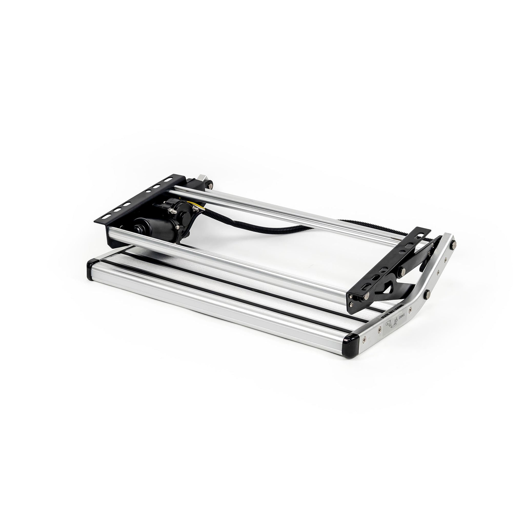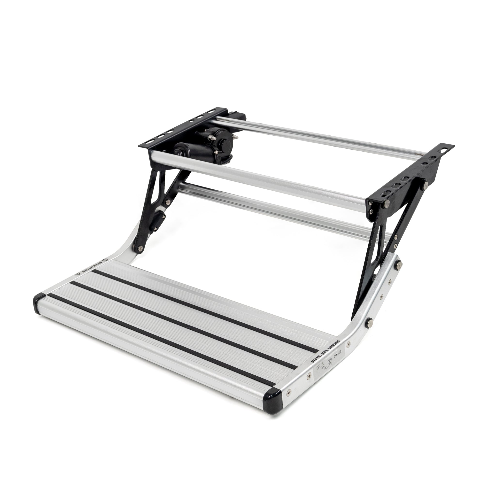 The Aussie Traveller 12V Drop Down Single V2 step is designed for functionality, safety and style. Lightweight but strong construction using powder coated steel brackets and aluminium, anti-slip treads with stainless steel springs and fixtures.